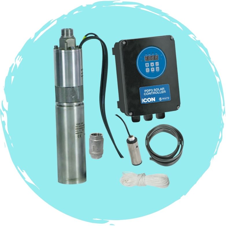 Easy to use ‘plug and play’ kitset solar pump for supplying water from wells or reservoirs. Ideal for farms or small waterworks.